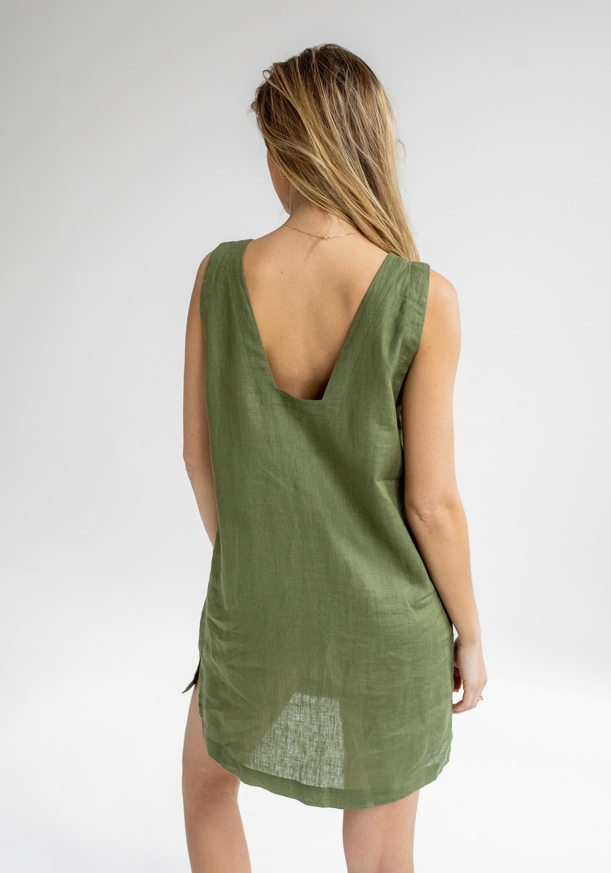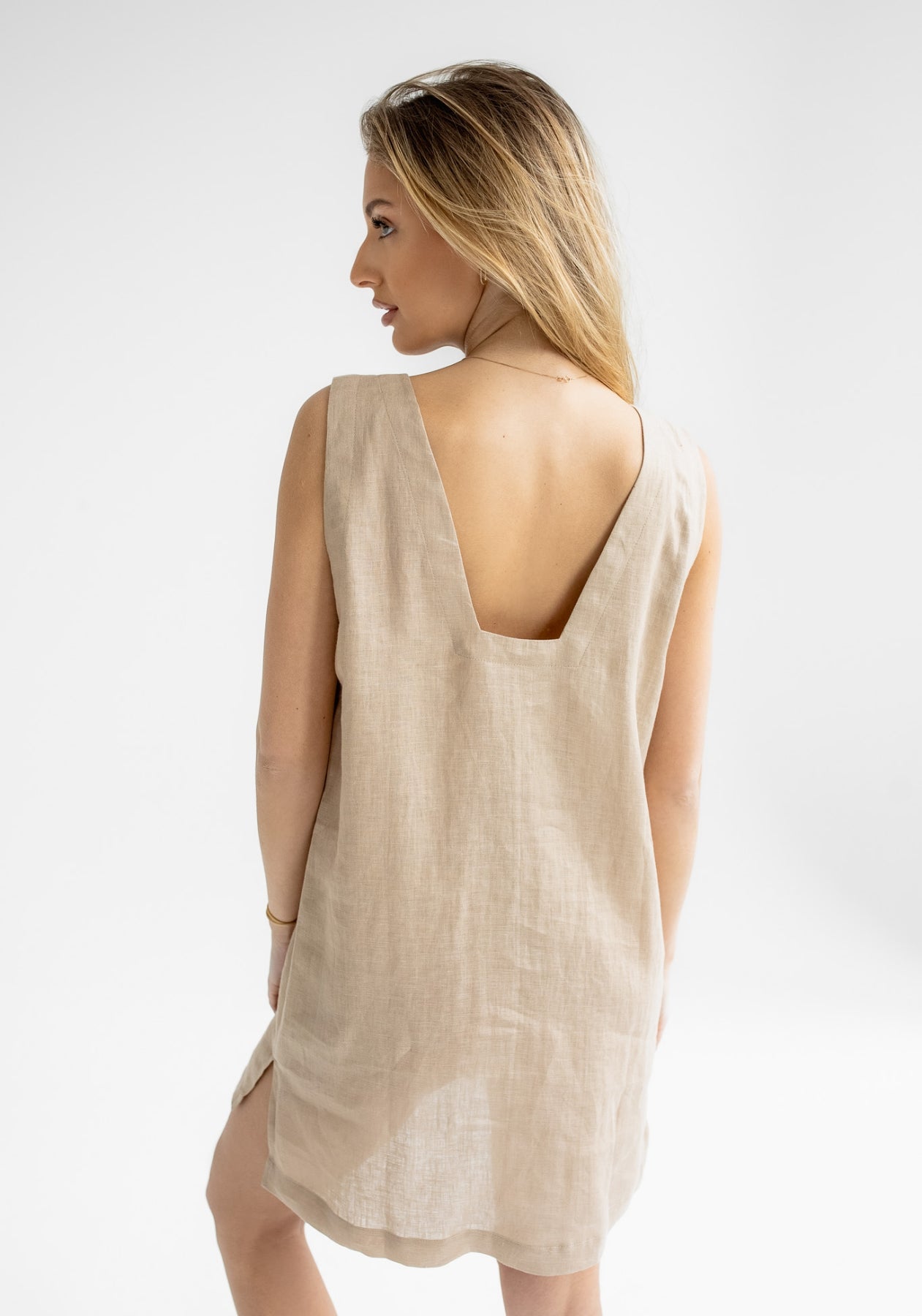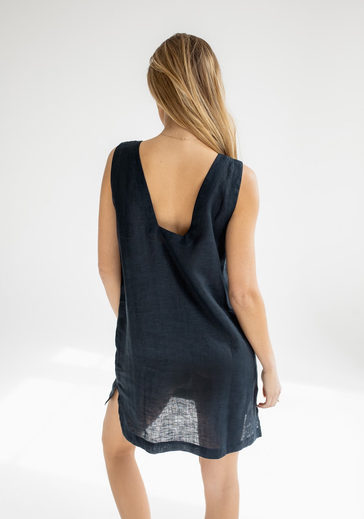 Dámské lněné šaty s otevřenými zády a bočními rozparky. Neuvěřitelně příjemné na těle díky změkčující úpravě látky. Vyrobené precizně a udržitelně v ČR. Látka po vypraní ještě podstatně zjemní. Jedná se o střih Regular, který padne vaší obvyklé velikosti.