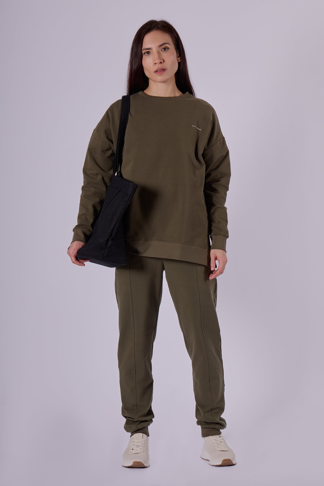 Prémiové dámské tepláky z 95 % počesané biobavlny – měkkého a nadýchaného materiálu – a 5 % elastanu pro jemnost a pružnost. Uvolněný, ale precizně střižený střih (loose fit) zajišťuje pohodlí po celý rok, doma i venku. Vyrobeno udržitelně a pečlivě v České republice.