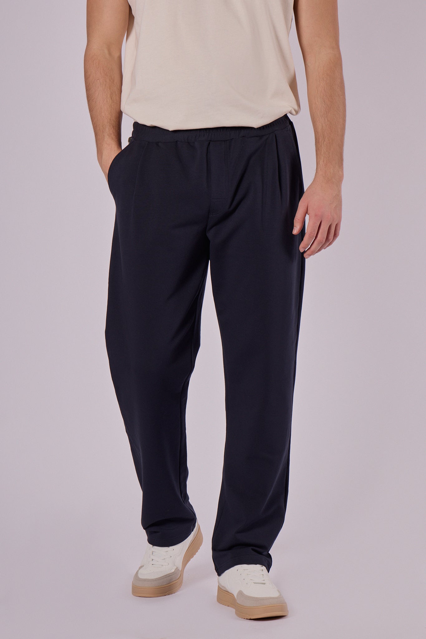 Pánské teplákové kalhoty vyrobené z 95 % certifikované biobavlny a 5 % elastanu. Přírodní materiál je měkký, prodyšný a přizpůsobivý – ideální na každodenní nošení.