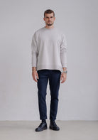 Men Sweatshirt Classic organic cotton - Loose fit. Men's high-quality hoodie without a hood, which is incredibly soft and comfortable on the body thanks to the 95% organic cotton material. The relaxed but precisely crafted cut of the sweatshirt ensures a feeling of perfect comfort all year round and is the basis of many outfits. Made sustainably and precisely in EU.