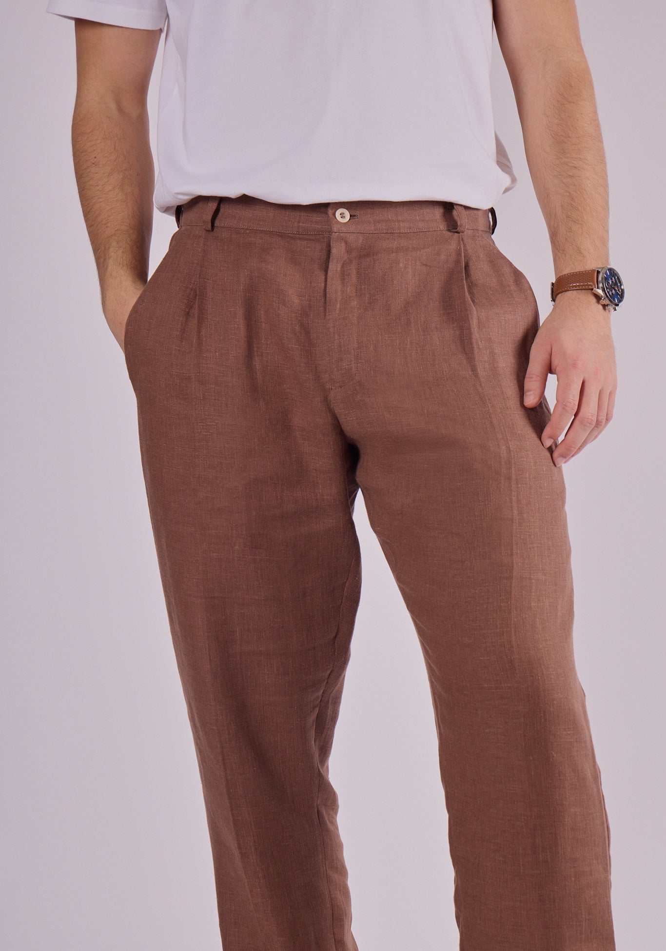 Lekkie, przewiewne i niezwykle wygodne. Te spodnie ze 100% lnu to doskonały wybór na ciepłe dni i codzienną elegancję. Doskonale komponują się zarówno z koszulą, jak i t-shirtem – w zależności od okazji.
