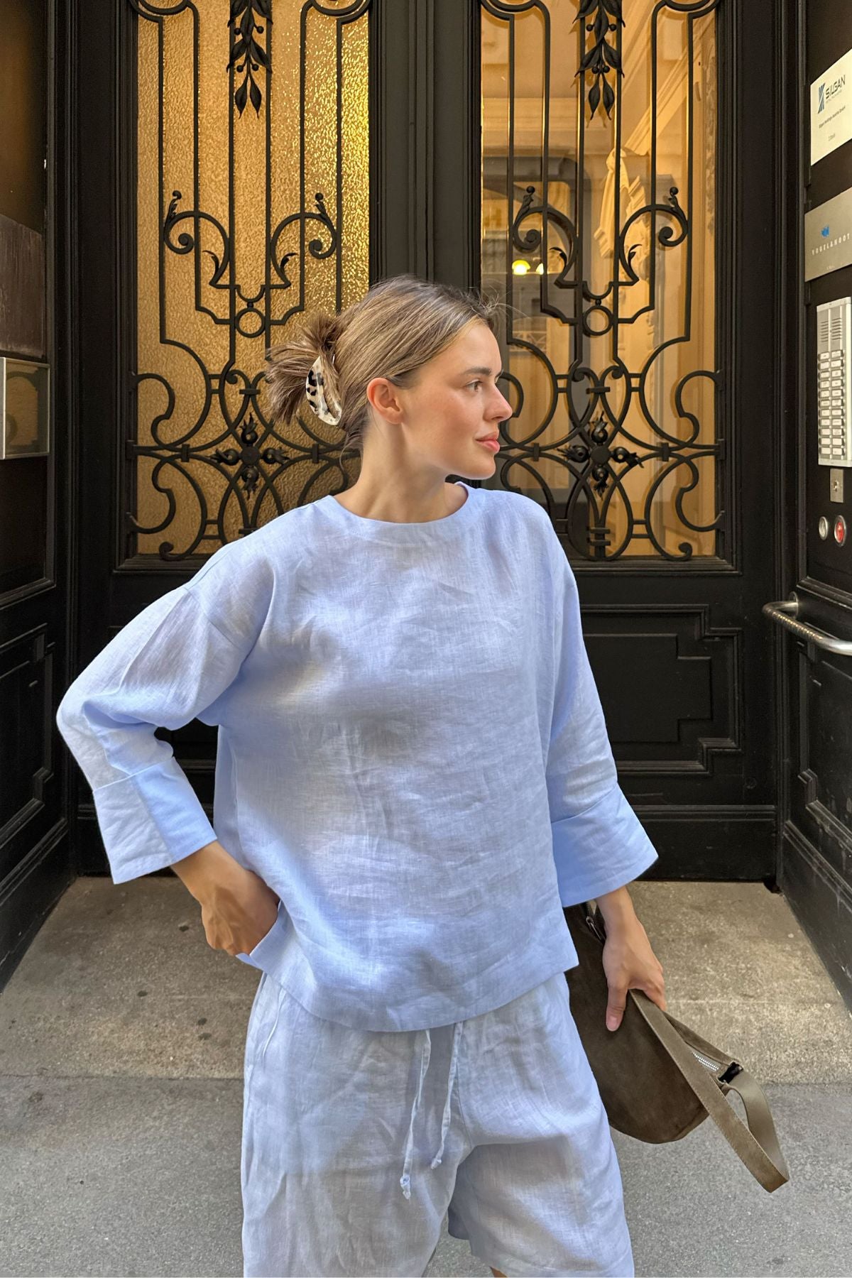 Outfit by Maria Hason | All Light blue - Shorts & Open back