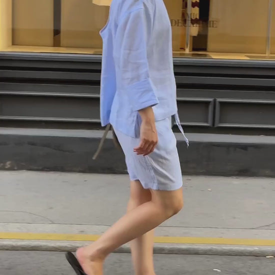 Dámské lněné šortky Light blue (Velikost)