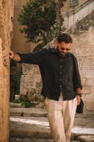 Outfit by Tomáš | Linen shirt with collar Deep blue