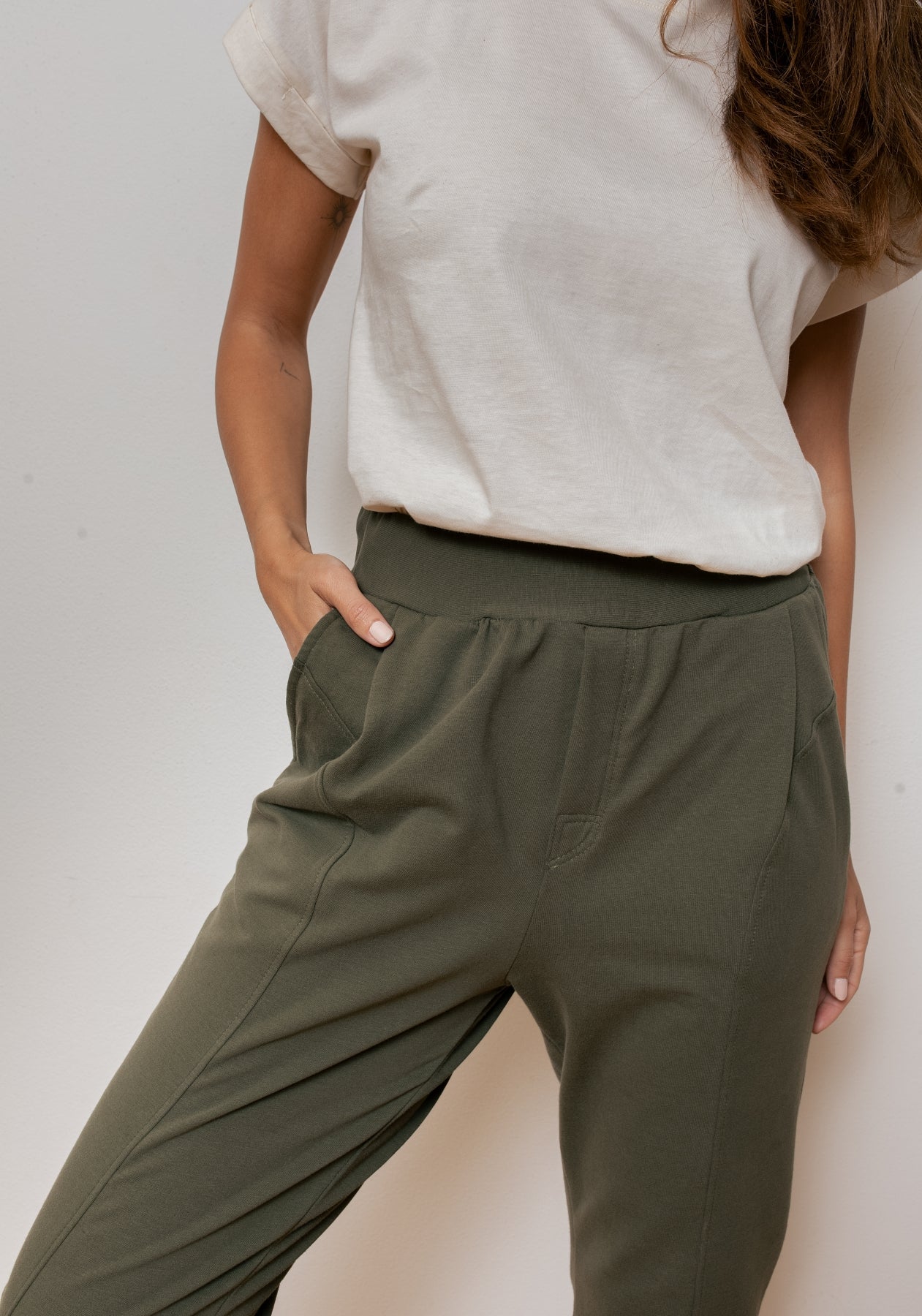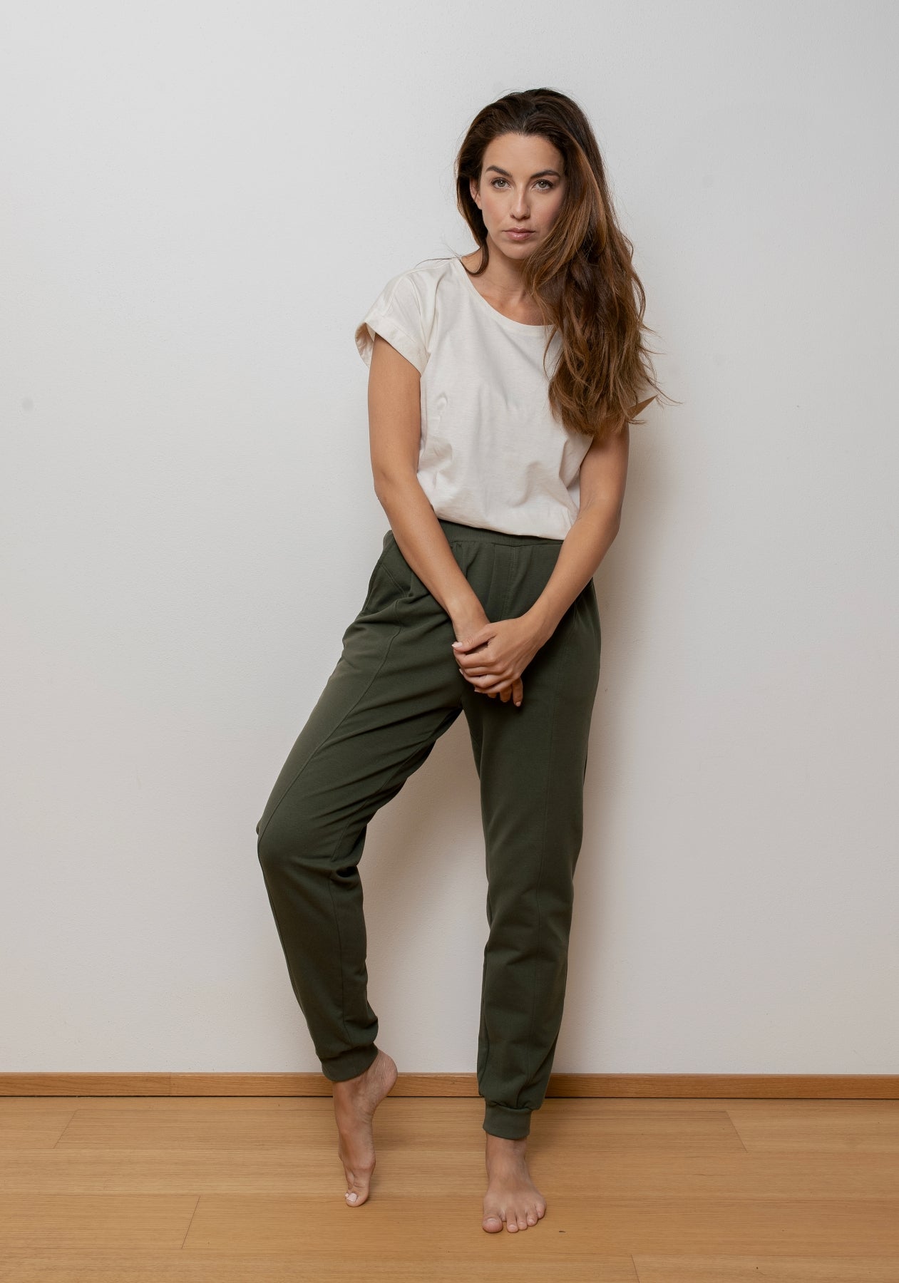 Women sweatpants organic cotton Moss green brushed - loose fit
