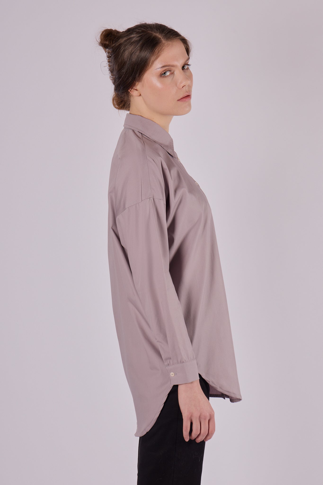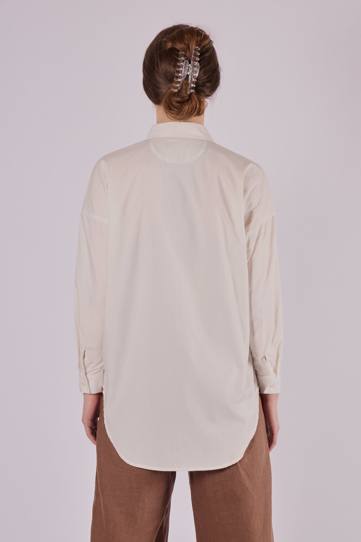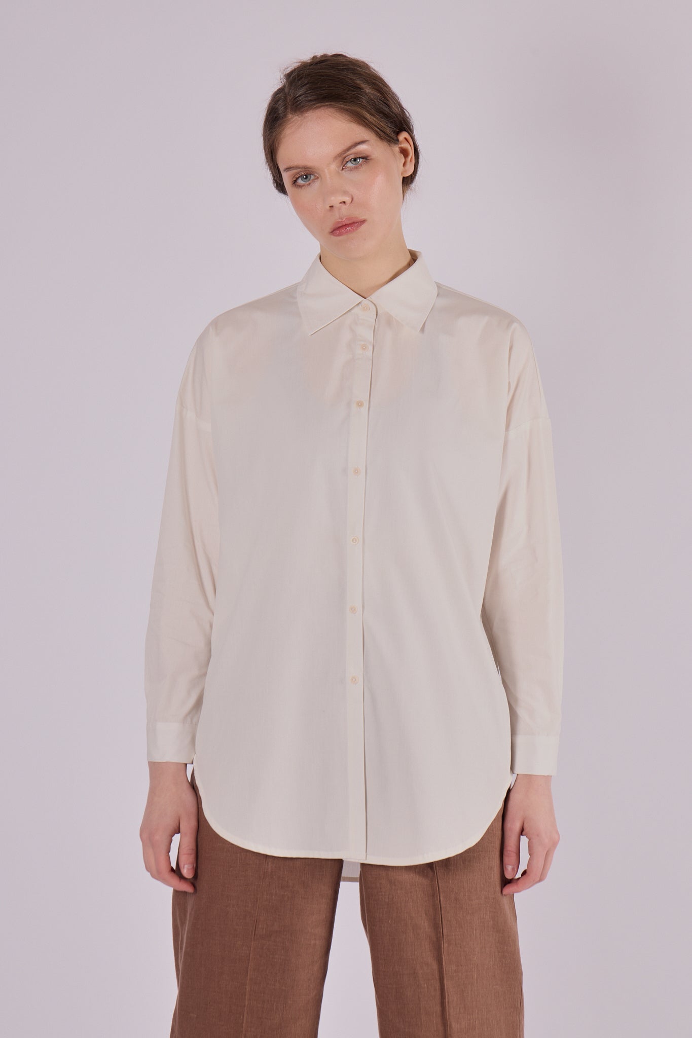 Štýlová dámska košeľa s klasickým golierom, vyrobená z mimoriadne jemnej biobavlny. Strih loose fit ponúka maximálne pohodlie a voľnosť, zároveň však pôsobí elegantne. Ideálny kúsok na celoročné nosenie – v lete ako ľahká vrstva, v zime ako základ outfitu.
