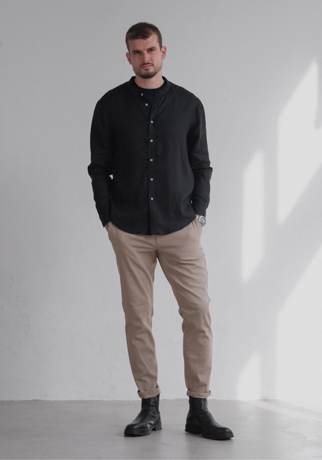 Pánska ľanová košeľa Black